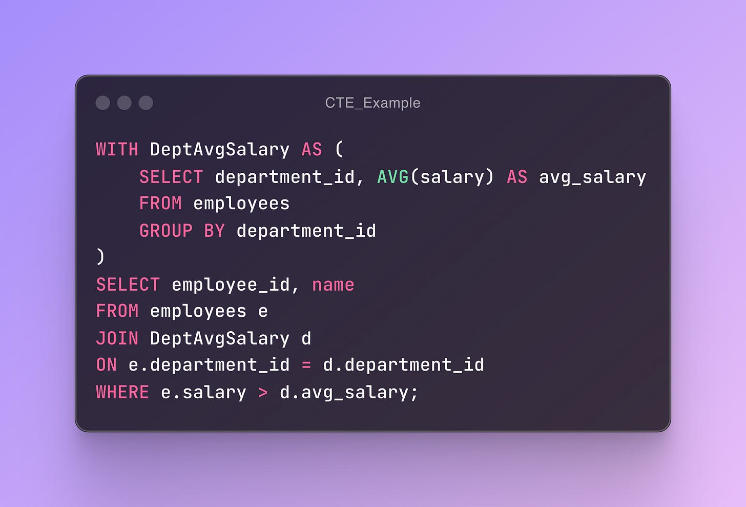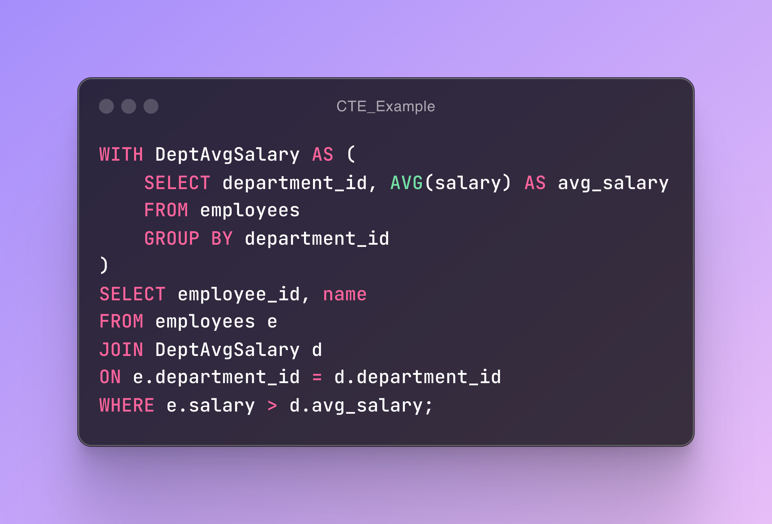 Reusing a Subquery: If the same subquery needs to be referenced multiple times within a query, a CTE can help you avoid rewriting it. This reduces the risk of errors and makes maintenance easier