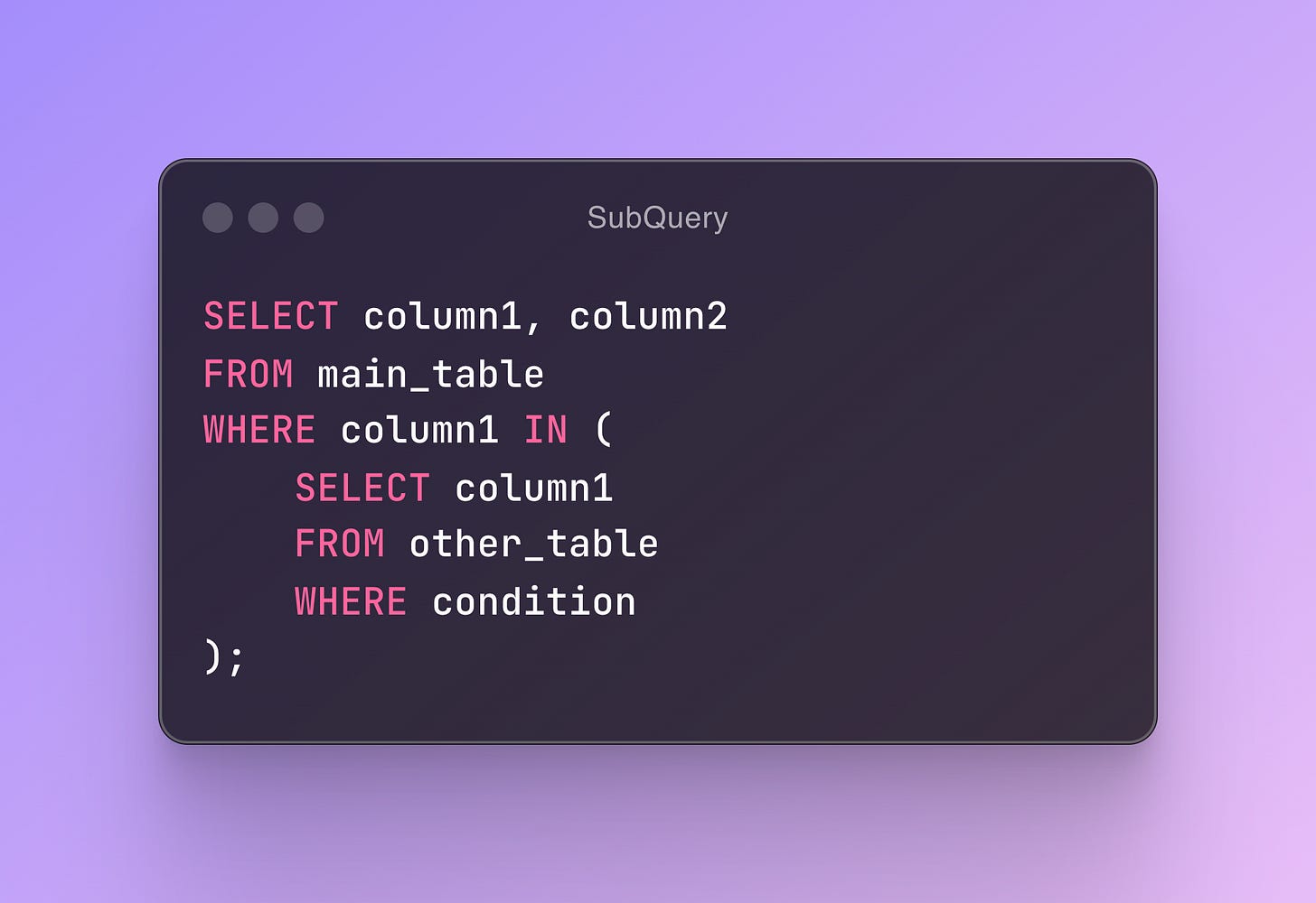 Simple, One-Time Use: When you need a subquery only once, especially if it’s straightforward and doesn’t need reuse. For instance, if you’re just retrieving a single aggregated value for filtering, a subquery can be quicker and simpler.